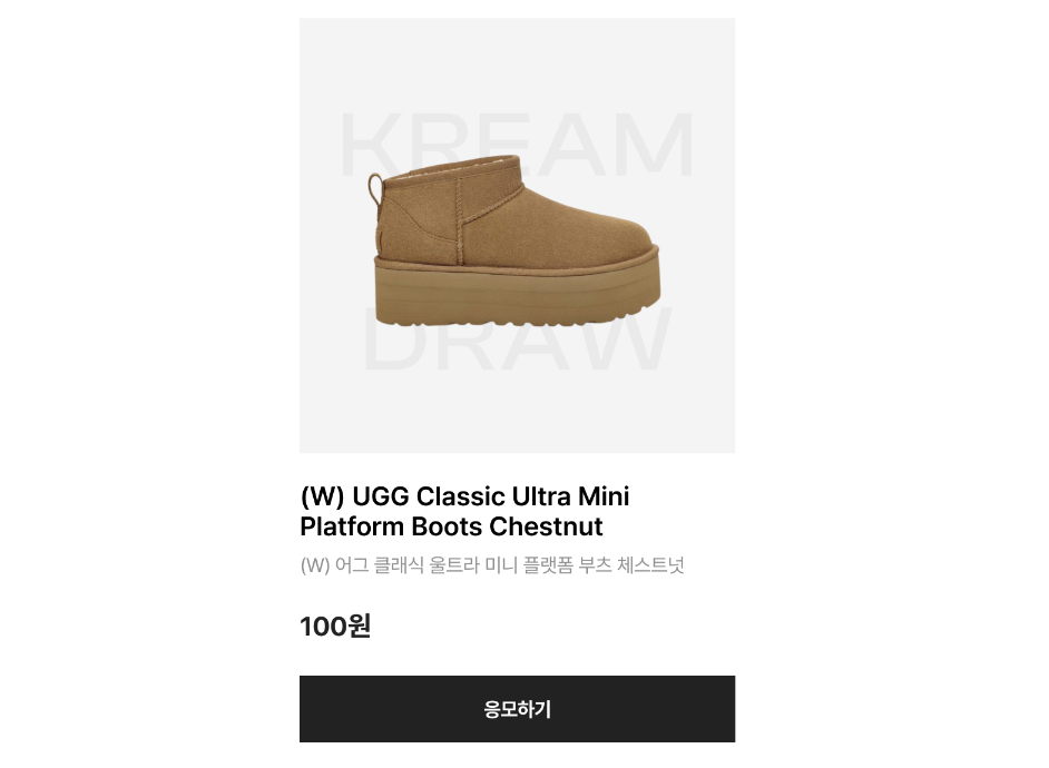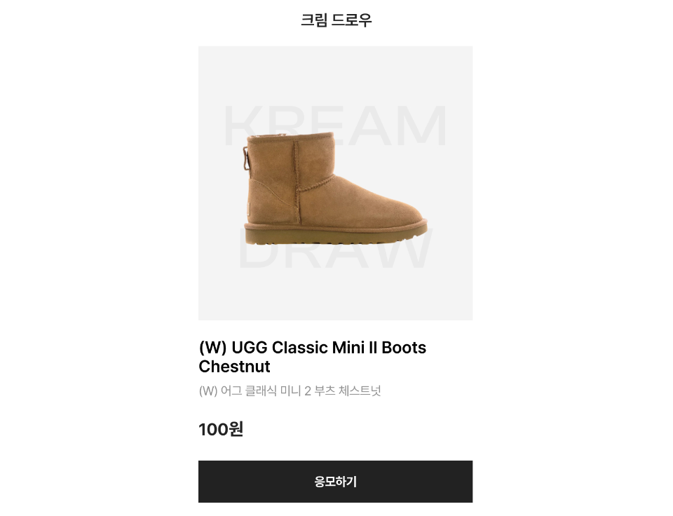 크림에서 진행하고 있는 UGG 클랙시 어그부츠 100원 드로우 메인 안녕하세요!