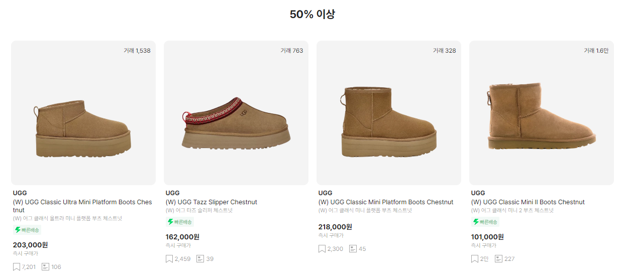 UGG 제품을 정가 아래 가격으로도