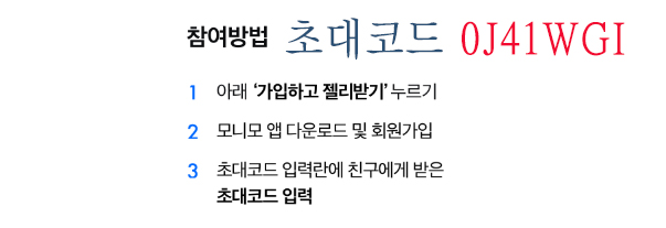 일단 모니모 초대코드 0J41WGI 입니다. 숫자 0로 시작